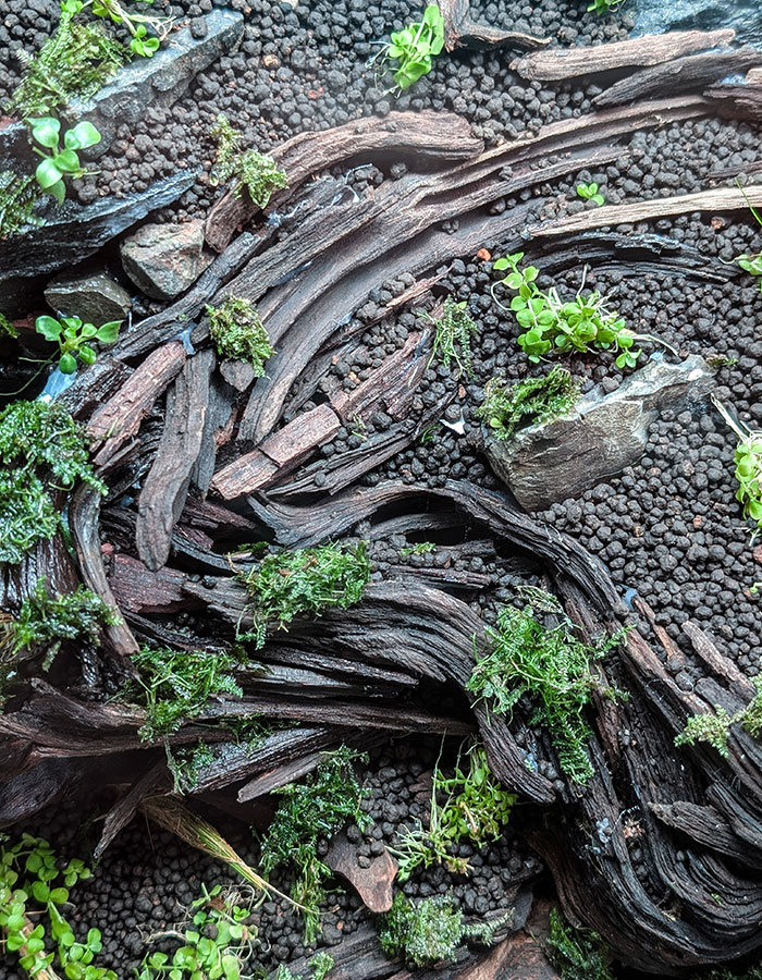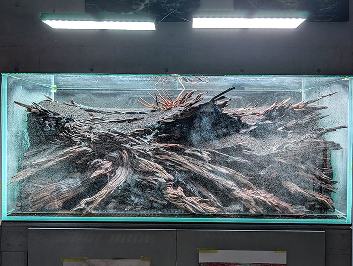 ソイルだけでなく、流木にもしっかり水分を染み込ませます。