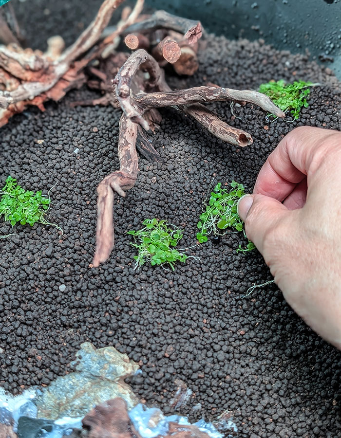 ようやく、水草を植栽してゆきます。