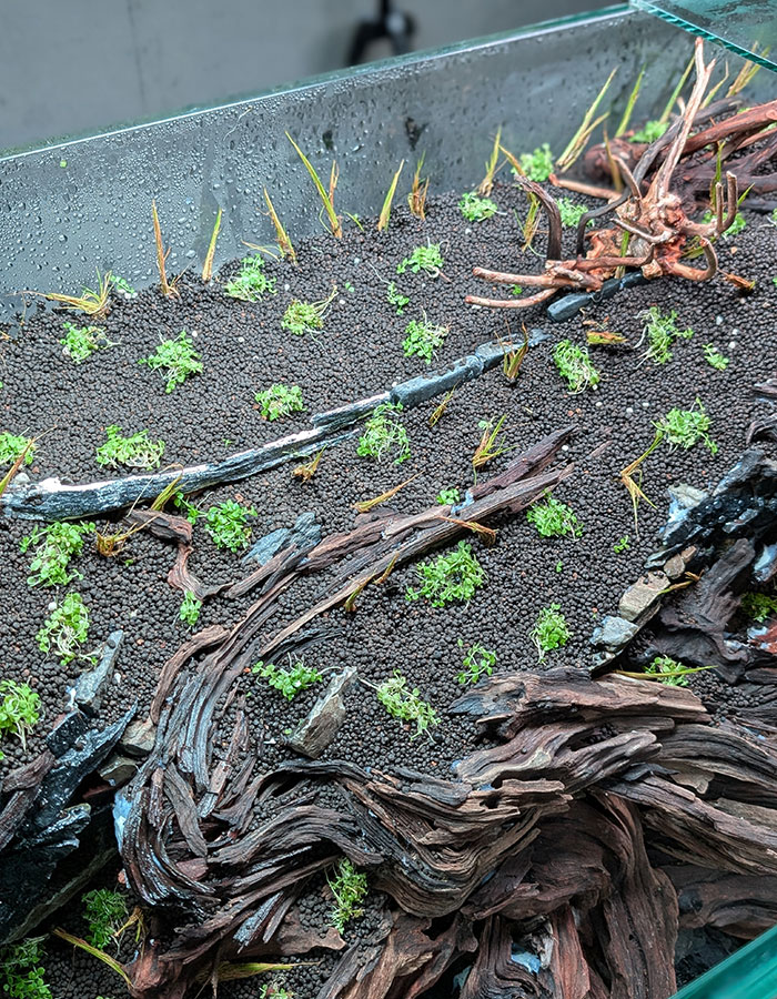 水槽上部のソイルも水分を吸って、しっとりしたら
