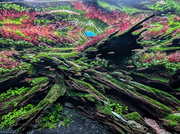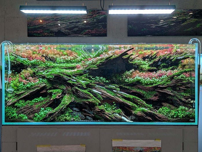 後景草の色の帯にも、白く塗った細枝を差し込んで