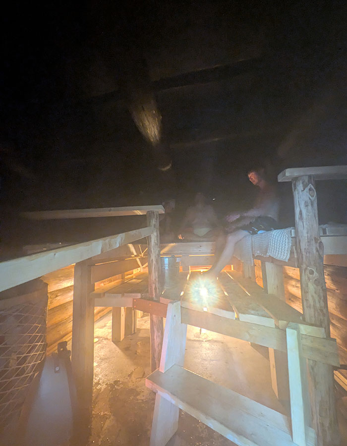 スモークサウナのような、サウナ室内