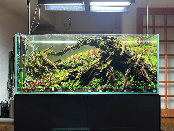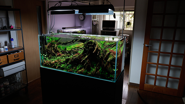 よく使う水草の育成と作品制作でお世話になった魚とエビの飼育に使っています